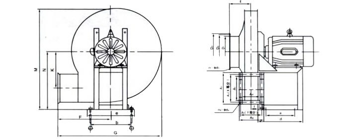 形式: 本通風(fēng)機為單吸入,有№.4、4.5、5、5.6、6.3、7.1、8.9、10、11.2、12.5、14、16共13號型號。