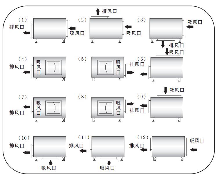 注:訂貨時還應注明風機的進出風口位置編號,出風口位置編號,詳見風柜進、出風口對照表。